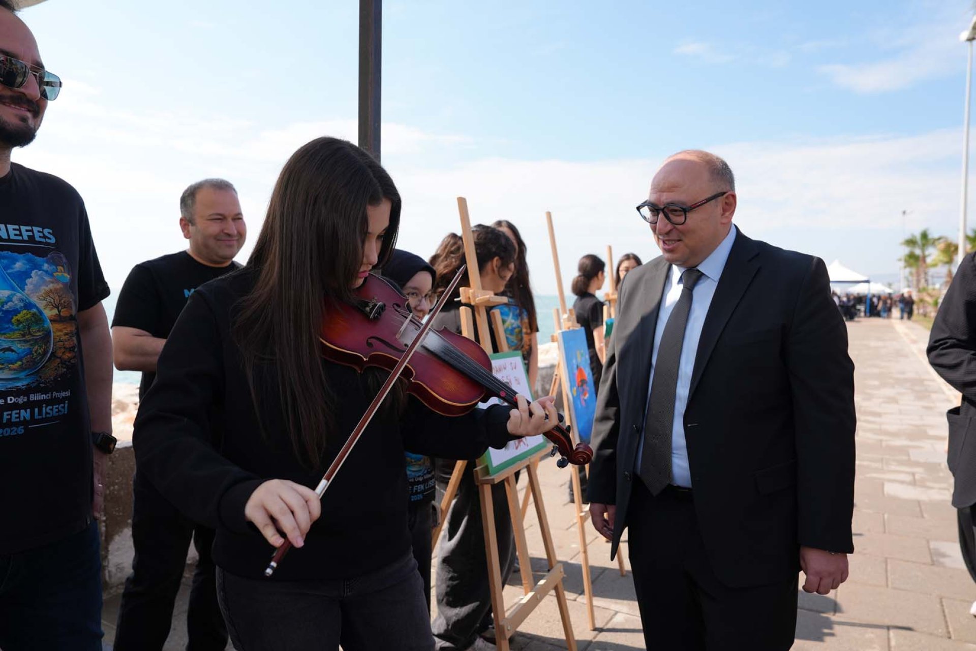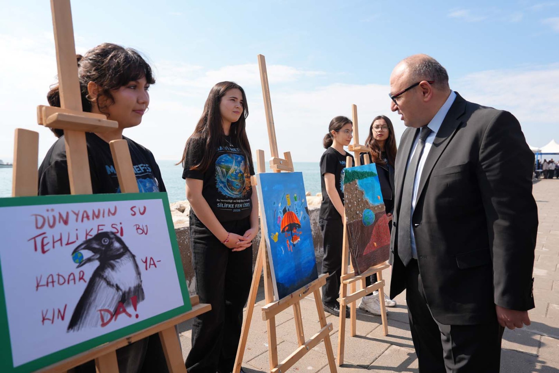 Tükenen kaynaklarımızın önemine dikkat çekmek amacıyla bu tarz etkinliklerin önemli olduğunu ifade eden Mersin İl Milli Eğitim Müdürü Muhammed Özdemirci, “ Bugün Erdemli Belediyemiz ile Mersin İl Milli Eğitim Müdürlüğümüz işbirliği ile öğrencilerimize su farkındalığı oluşturmak için güzel ve anlamlı bir etkinlik yaptık. Öğrencilerimiz iki üç aydır devam eden atölye çalışmalarımız kapsamında yapmış oldukları çalışmaları burada sergilemektedirler. Burada maksat suyun önemine dikkat çekmek, tükenen kaynaklarımızın önemine dikkat çekmek ve öğrencilerimizin gelecekte su tasarrufu yapmaları noktasında bir farkındalık oluşturmayı amaçlamaktayız. Burada gördüğümüz kadarıyla öğrencilerimiz çok güzel besteler yapmışlar, çok güzel eserler ortaya çıkarmışlar. Hep birlikte burada yapılan etkinlikleri ziyaret etmekteyiz. Bu çalışmaların İl Genelimizde de yaygınlaştıracağımızı belirtmek isterim. Böylece inşallah daha güzel bir gelecek bırakacağız ve suyu daha tasarruflu kullanarak geleceği daha aydınlık bir şekilde bakma fırsatımız olacak” diye konuştu.